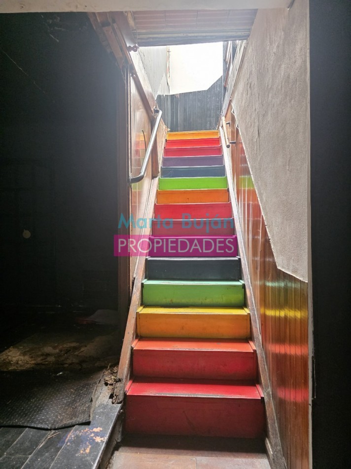 LA PLANTA ALTA TIENE DOBLE INGRESO, DESDE LA CALLE CON UNA ENTRADA INDEPENDIENTE POR ESCALERA Y POR EL SALON DESDE UNA ESCALERA QUE SE ENCUENTRA EN EL FONDO.